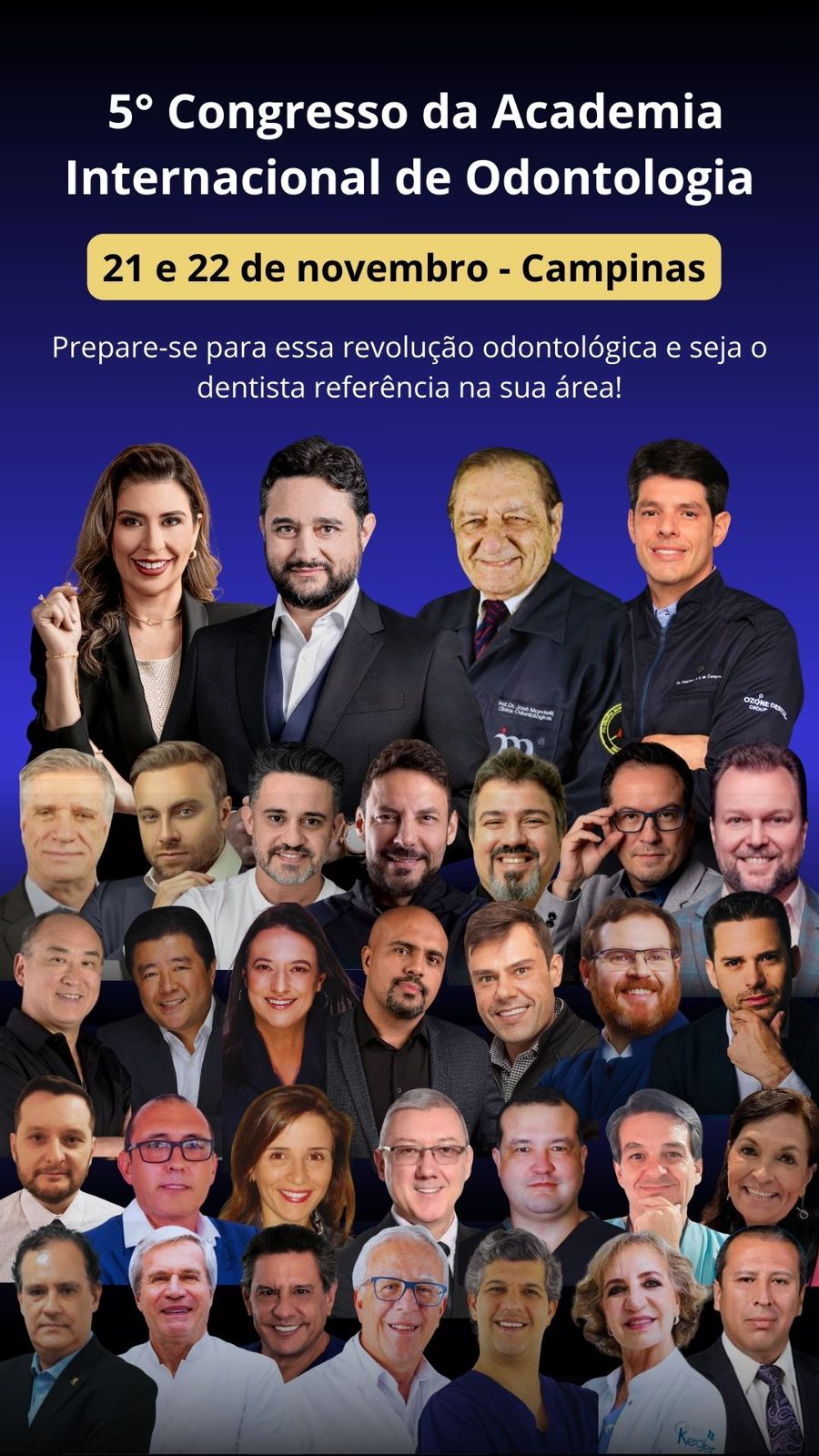 Este evento internacional será de dois dias completos de aulas e palestras, com conteúdos exclusivos e atualizados sobre as diversas áreas da odontologia, com os maiores nomes da odontologia do Brasil e do mundo. Serão mais de trinta palestrantes renomados e focados na prática clínica. Além de: