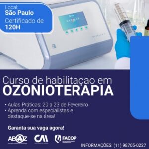 A Associação Brasileira de Ozonioterapia (ABOZ) promove curso de habilitação híbrido de 120 horas, com: